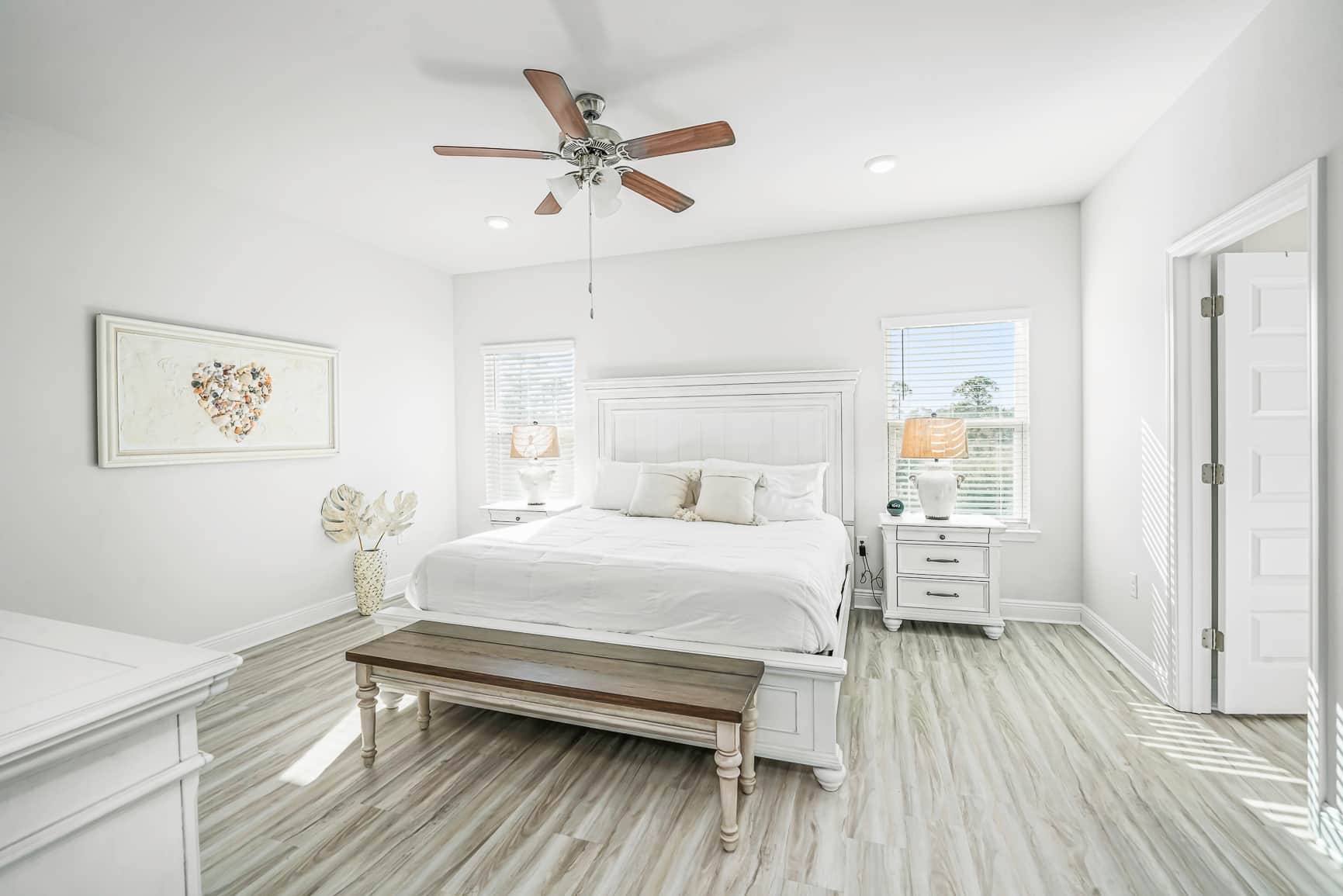 Our beach retreat features modern amenities, spacious living areas, and a 2025 six-seat ICON golf cart included with every stay—making it easy to explore the trails, pools, beaches, shops, and restaurants throughout WindMark. Guests love unwinding on the porch with sunset views, taking a quick ride to the shoreline, or a sunset cruise on the golf cart trail for a picture-perfect end to the day.